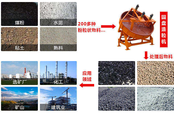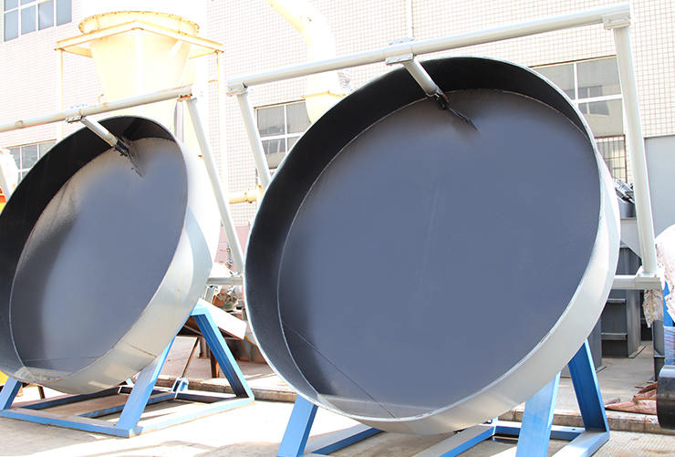 大盤傾角采用角度墊片,調(diào)整靈活方便。盤節(jié)沿盤體可上下調(diào)節(jié),盤節(jié)端部為邊法蘭,料球出盤時可保證料球不被拉傷、撕裂。成球率高、顆粒圓潤強(qiáng)度大、操作方便。