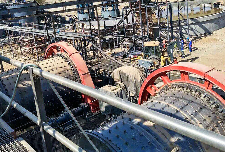 球磨機由給料部、出料部、回轉(zhuǎn)部、傳動部(減速機、小傳動齒輪、電機、電控)等主要部分組成。中空軸采用鑄鋼件,內(nèi)襯可拆換,回轉(zhuǎn)大齒輪采用鑄件滾齒加工,筒體內(nèi)鑲有耐磨襯板,具有良好的耐磨性,本機運轉(zhuǎn)平穩(wěn),性能可靠,根據(jù)物料及排礦方式,可選擇干式球磨機和濕式球磨機。